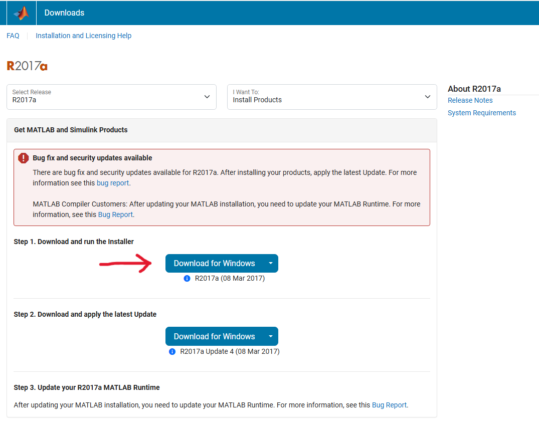 - Select the product you’d like to download. If there are multiple download options, select the first one to “Download and run the installer”, not the the Update. The installer will download to your downloads folder. This is the last step you can complete without having a temporary admin password.