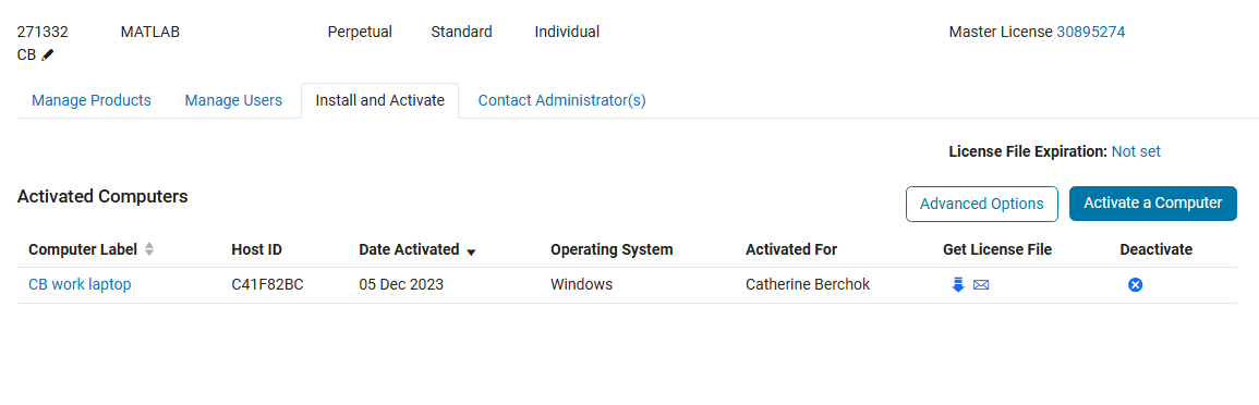 Example from R2023b. If prompted for the computer host id, this can be found by opening up a cmd prompt and running ‘vol’.