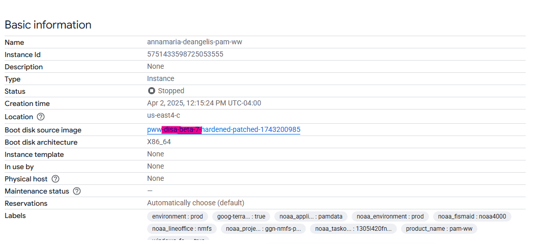 The text under the ‘image’ field indicates the current version of your pam-ww. The pam-ww image name is between the text “pww-disa” and “hardened…”, in this case, “beta-3”. To check whether there are more recent pam-ww versions and identify if the bug you are experiencing has been resolved in one of those versions, can cross reference your current version with pam-ww template change tracking document linked below. Both documents track the changes and are organized in consecutive order where the last entry represents the most recent available version.