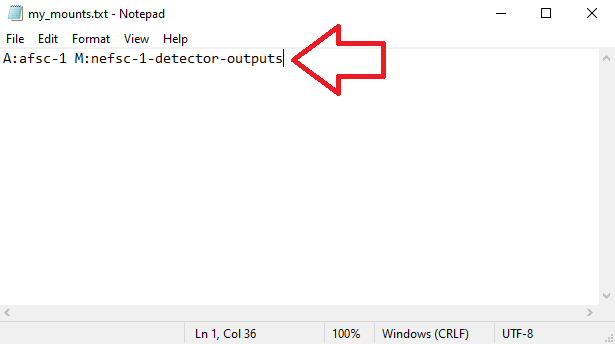 N:nefsc-1 M:nefsc-1-detector-outputsWrite your desired drive bucket mounts and then save the my_mounts.txt file.