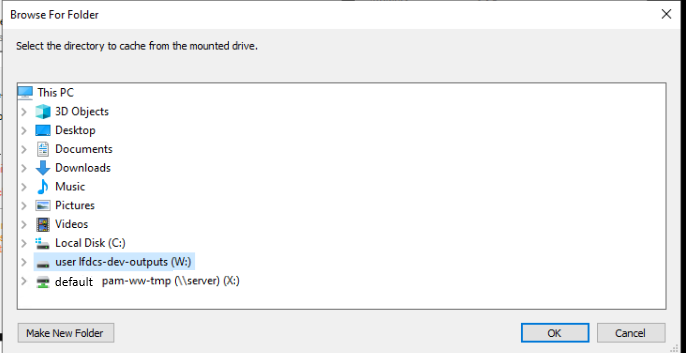 Click ‘Browse…’ and select the mounted drive and folder you wish to work with. NOTE: only ‘user’ mounts, as well as custom Rclone mounts that are configured to have a cache will work if selected with this tool - ‘default’ mounts will not work for this. If you need read-ahead capability to a default mount, you can additionally mount it withe the user mount tool in (2).