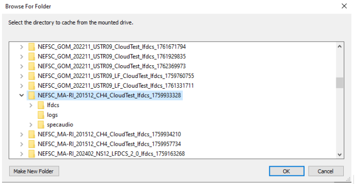 NMFS passive acoustic data in the cloud is available through the pam-ww with broad read level access within the desktop shortcut “Mounted_Acoustic_Data”. These are referred to as the default mounts: they are read only and do not cache, which is often ideal for processing-heavy and hands-off workflows. For other cases there are:
