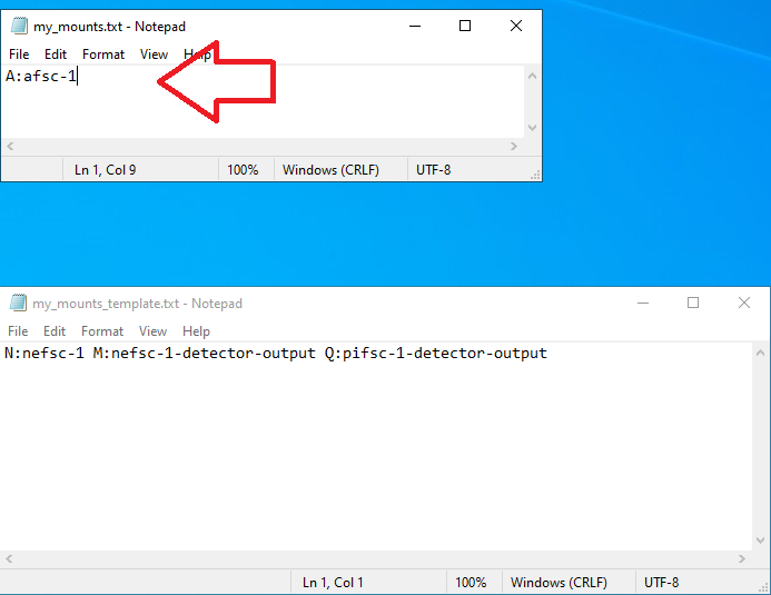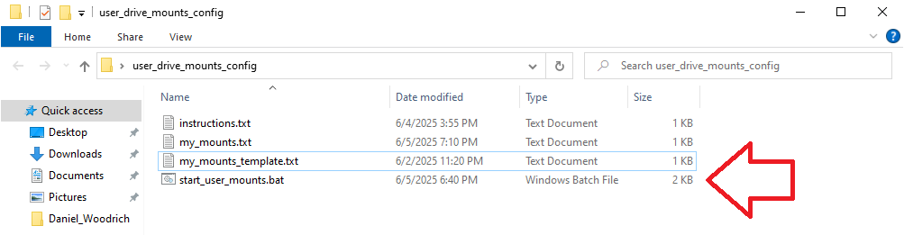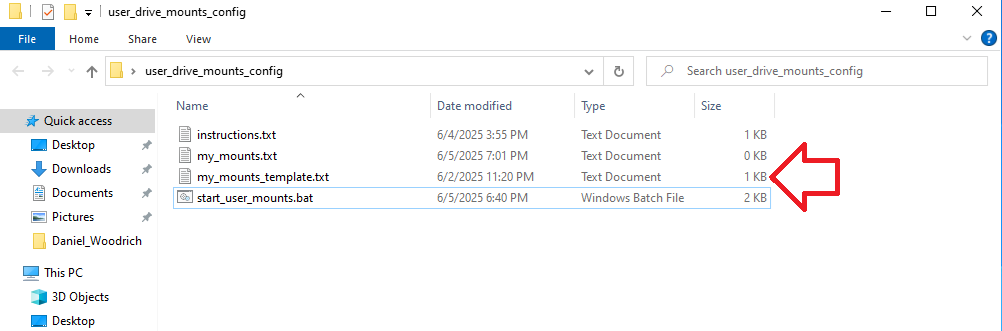 - If your needs for user mounts change, you can just go back to the my_mounts.txt file and specify a different set (or no) mounts as desired. Like before, these changes will take effect on login, or when you next run the ‘start_user_mounts.bat’ file.
