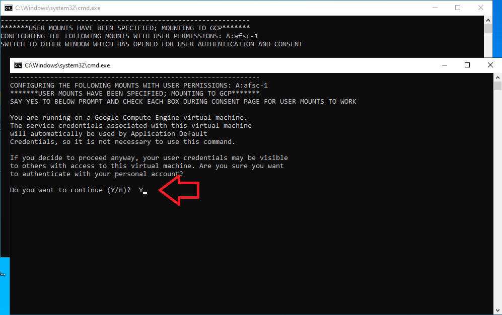 - The pam-ww will attempt to reuse your authentication as long as it is valid. The first time it runs, and when Google needs to refresh your authentication, the pam-ww will prompt you to login and give user consent with Google. When this happens, enter ‘Y’ in the command window that the ‘start_user_mounts.bat’ opens to complete the browser login and user consent flow.