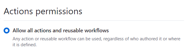 Under Settings -> Actions -> General -> Actions permissions select ‘Allow all actions and reusable workflows’. Select save