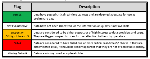 - IOOS N/A uses “9” for quality matrix, but PyPAM quality matrix functionality still in development - current missing data flag is “NAN”