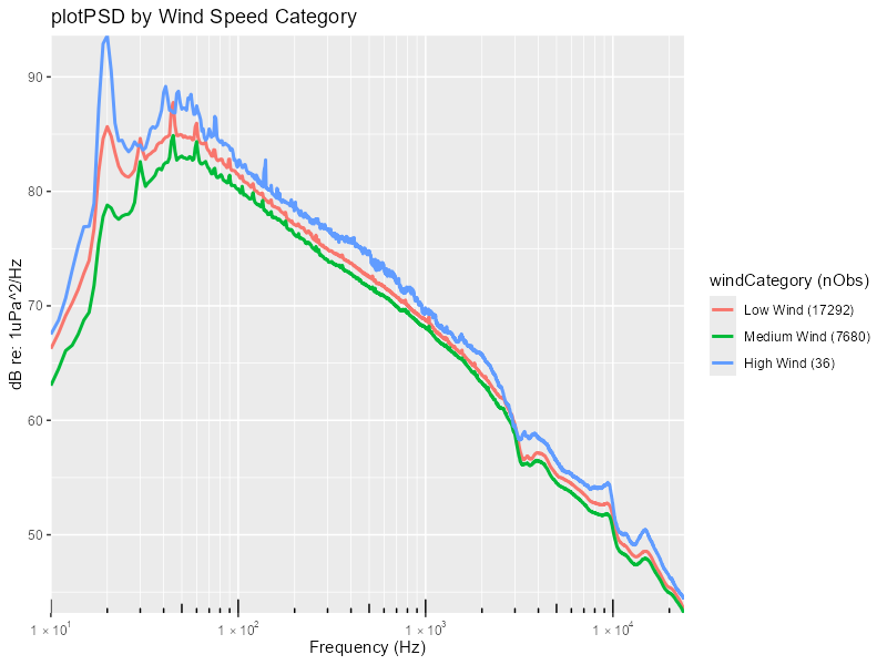 Example of pairing environmental data (wind speed data from the GFS model) to soundscape metrics using the matchGFS function.