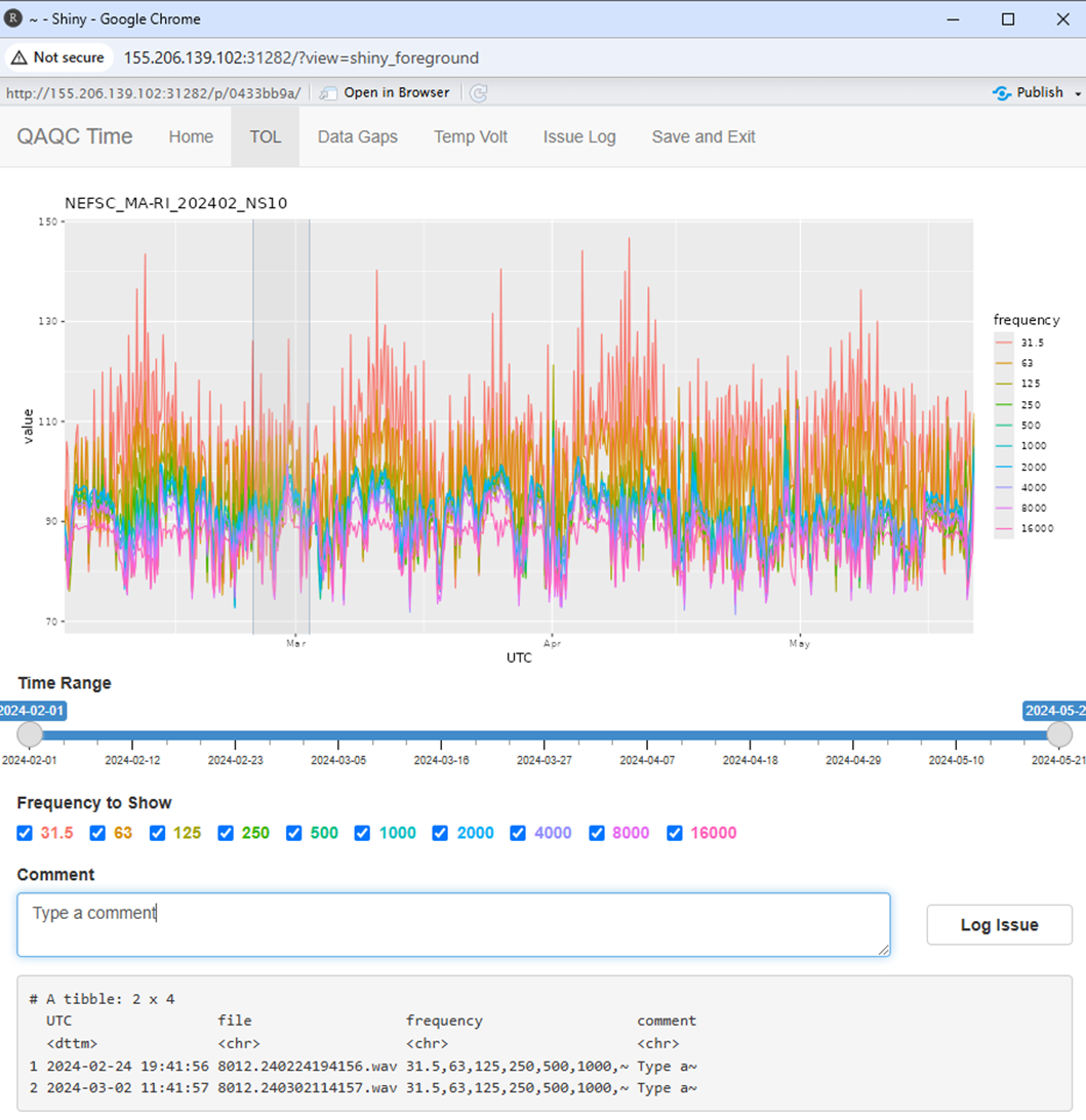 runQAQCReview), load the QAQC figures and data generated in the previous step, and review or annotate any compromised data - Once review is completed, or if review needs to be paused, save the issues data and stop the app.